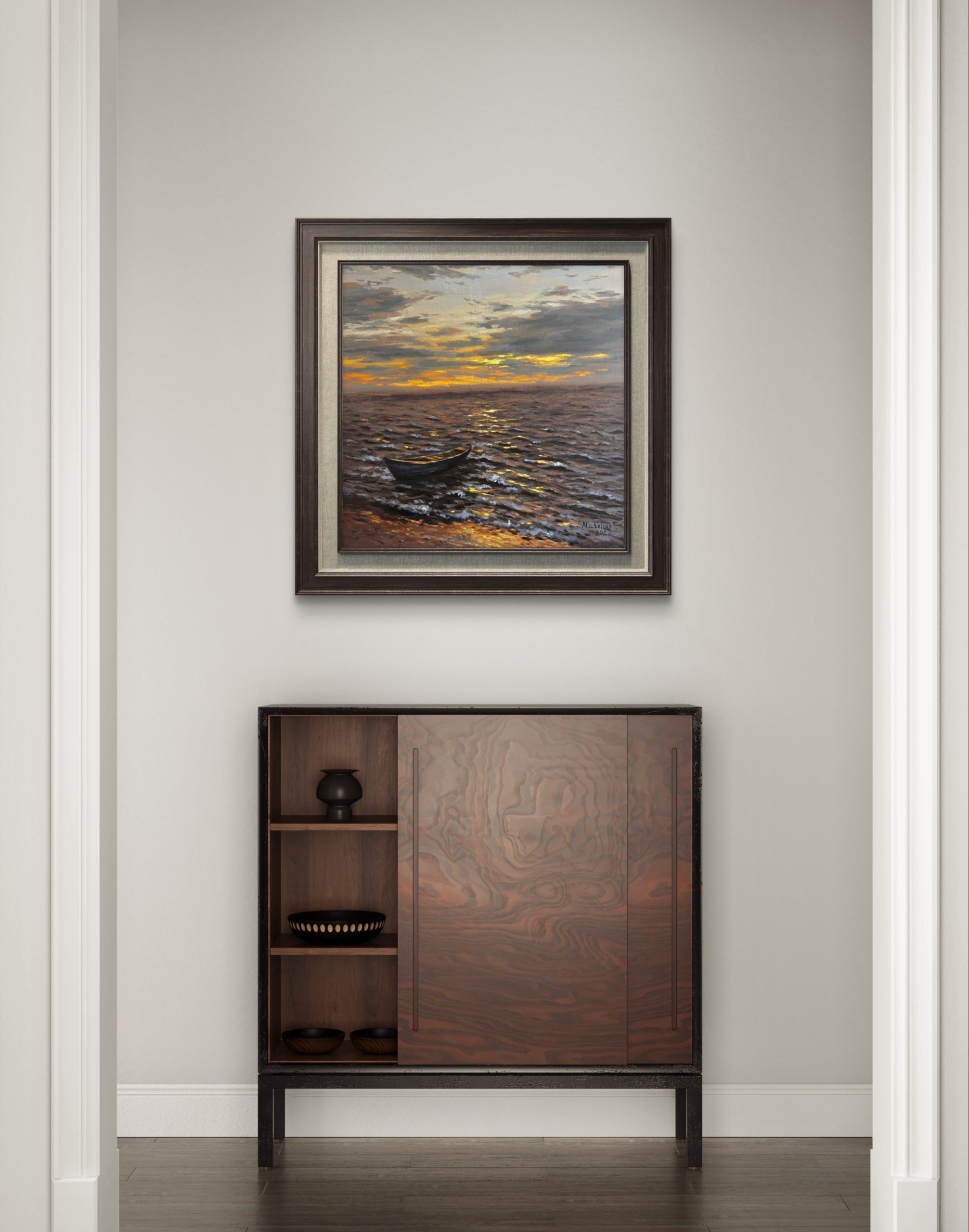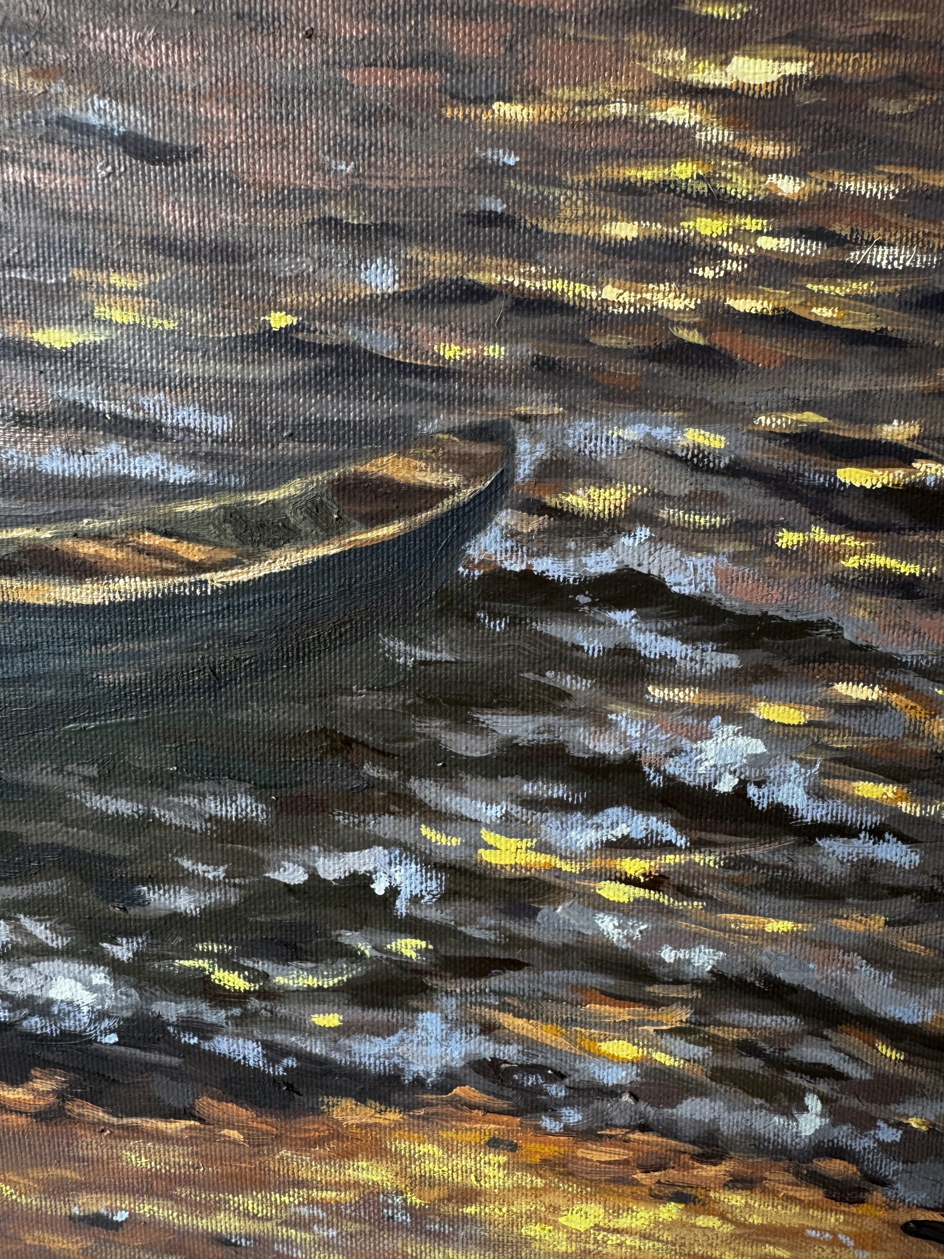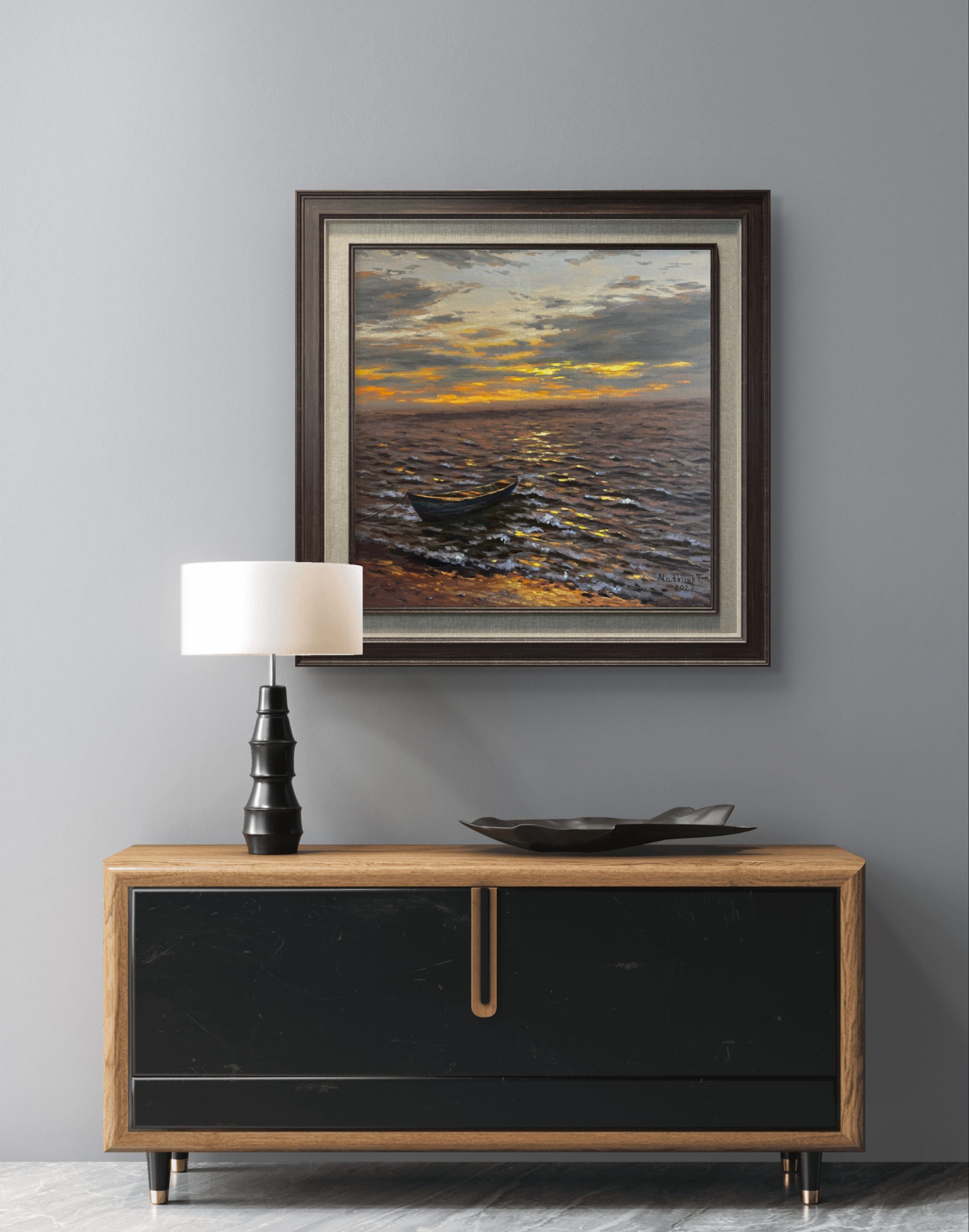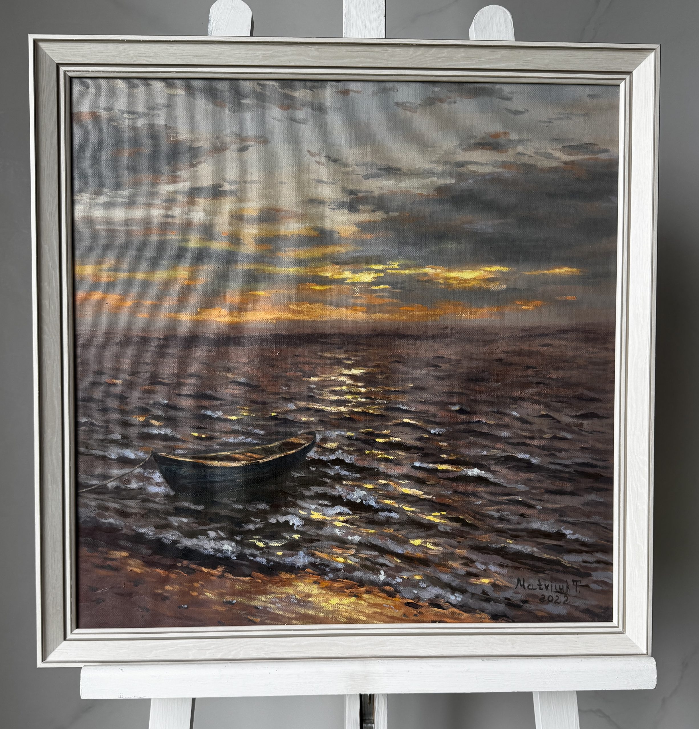 “Перед дощем” робить картину не просто пейзажем, а історію про внутрішній стан, коли людина готова до нового. Відчуття, що зараз щось зміниться – і це не страшно, а природно. Човен на березі – це символ того, що нам інколи треба зупинитися, та прислухатися до себе. Добре мати такий символ у домі, щоб памятати про баланс.